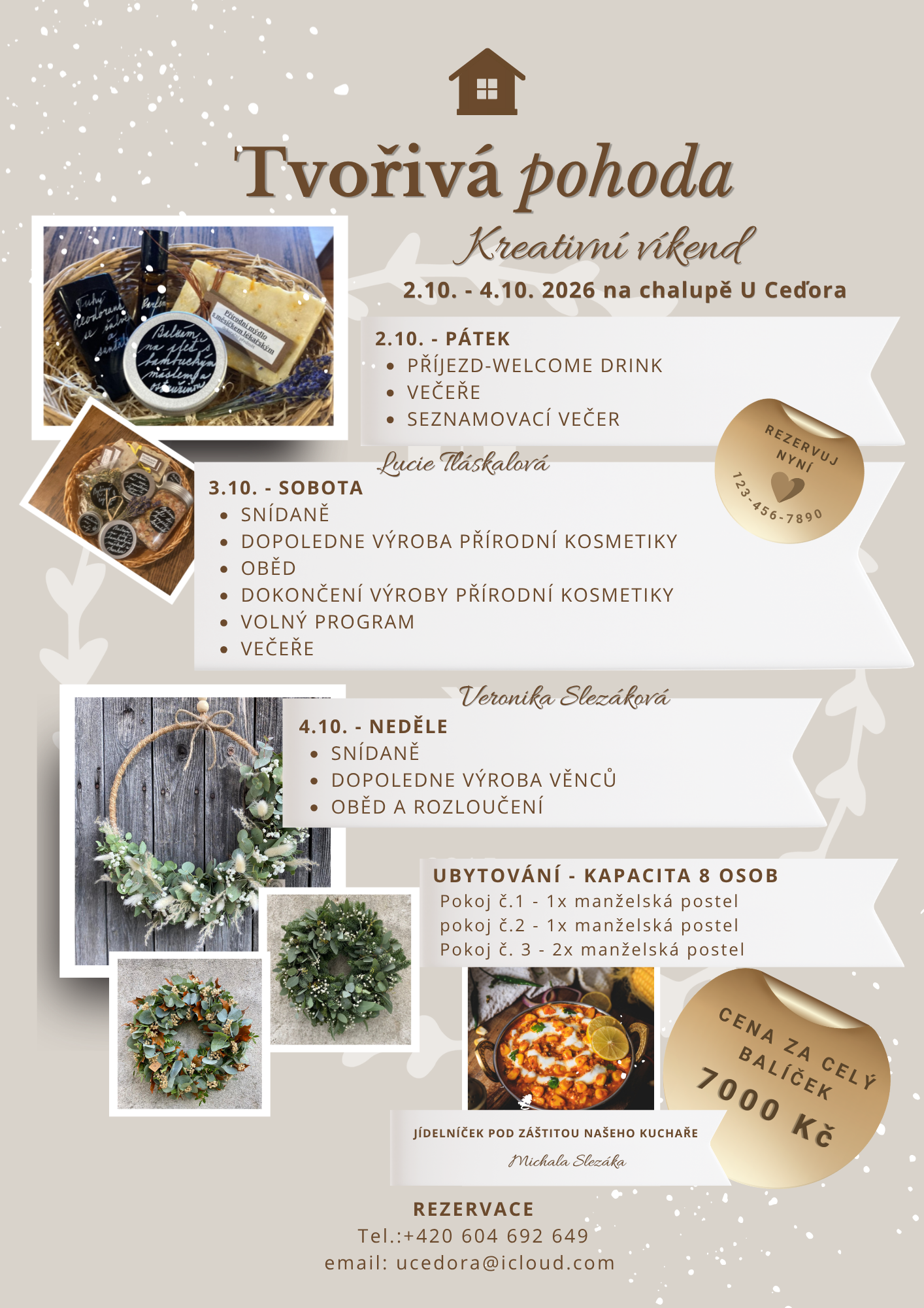 „Jsme moc rádi, že právě Vás oslovila naše chalupa. Našim přáním je, abyste se zde cítili jako doma, užili si každý okamžik ať s rodinou, přáteli nebo pouze zažili romantický pobyt ve dvou. Doufáme, že váš pobyt splní všechna vaše očekávání. Naše chalupa byla vytvořena s láskou, aby vám nabídla klid, pohodu a nezapomenutelné zážitky. Doufáme, že si užijete vůni dřeva, praskání ohně v kamnech a atmosféru, která vás přenese zpět do časů, kdy čas plynul pomaleji.